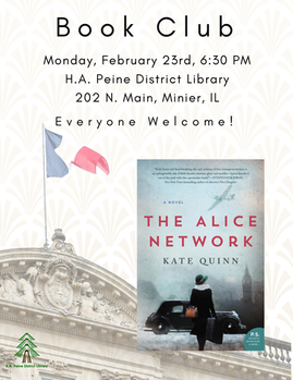 Book Club: Monday, February 23rd, at 6:30 PM.